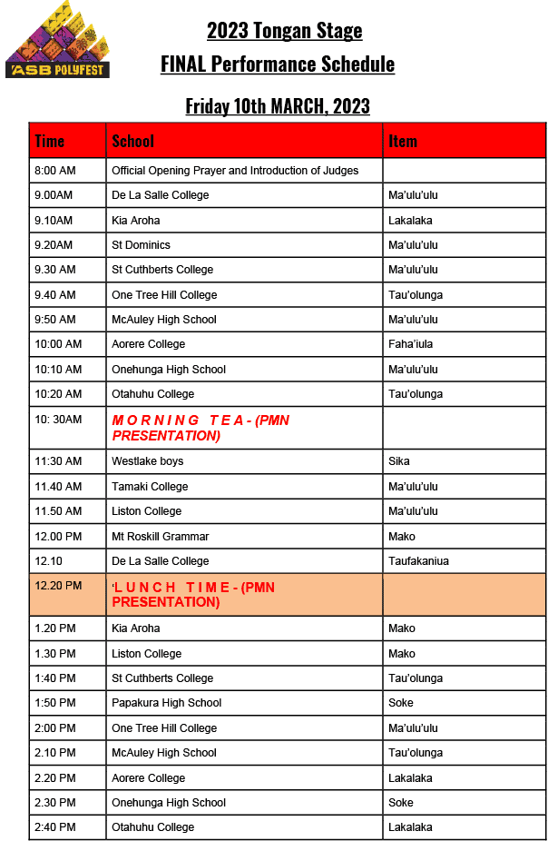 The Tongan group is the only group performing this Friday at 9.00am for the Ma’ulu’ulu and again at 12.10pm for the Taufakaniua. Parents and families can purchase a per day, per person for entry on your preferred day only for $5.00 here